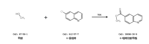 2.通过甲醇和6-氯喹啉合成6-喹啉羧酸甲酯,收率约76%;
