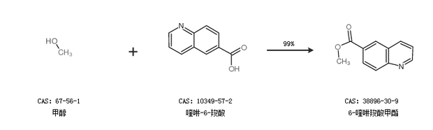 1.通过甲醇和喹啉-6-羧酸合成6-喹啉羧酸甲酯,收率约99%;