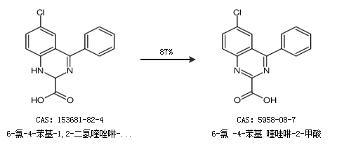 1.通过6-氯-4-苯基-1,2-二氢喹唑啉-2-羧酸合成6-氯 -4-苯基 喹唑啉-2-甲酸,收率约87%;