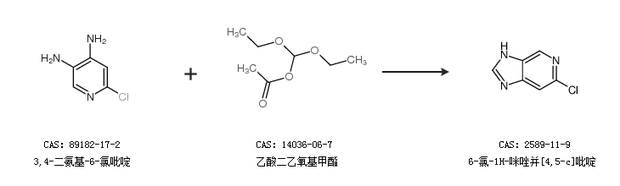 1.通过3,4-二氨基-6-氯吡啶和乙酸二乙氧基甲酯合成6-氯-1H-咪唑并[4,5-c]吡啶