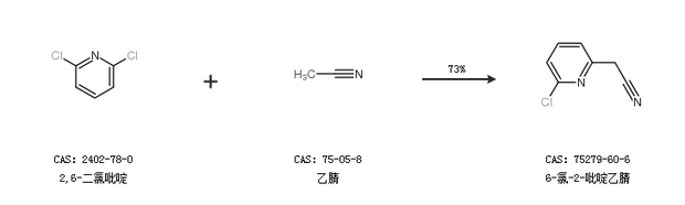 1.通过2,6-二氯吡啶和乙腈合成6-氯-2-吡啶乙腈,收率约73%;