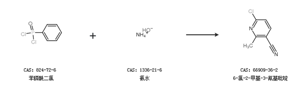 2.通过苯膦酰二氯和氨水合成6-氯-2-甲基-3-氰基吡啶