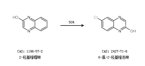 1.通过2-羟基喹喔啉合成6-氯-2-羟基喹恶啉,收率约50%;