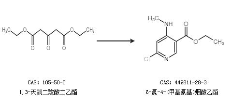 2.通过1,3-丙酮二羧酸二乙酯合成6-氯-4-(甲基氨基)烟酸乙酯