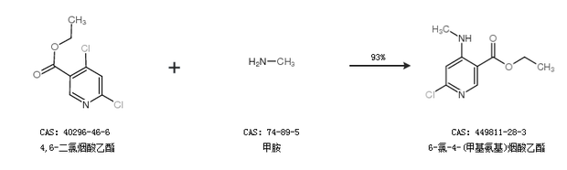 1.通过4,6-二氯烟酸乙酯和甲胺合成6-氯-4-(甲基氨基)烟酸乙酯,收率约93%;