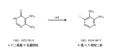 2.通过4,5-二氨基-6-羟基嘧啶合成6-氯-4,5-嘧啶二胺,收率约14%;