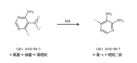1.通过4-氨基-5-硝基-6-氯嘧啶合成6-氯-4,5-嘧啶二胺,收率约65%;
