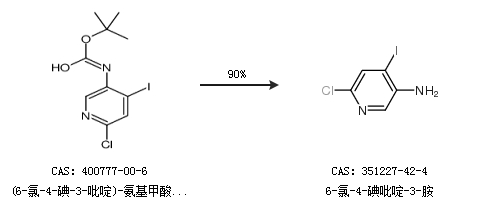 1.通过(6-氯-4-碘-3-吡啶)-氨基甲酸-1,1-二甲基乙酯合成6-氯-4-碘吡啶-3-胺,收率约90%;