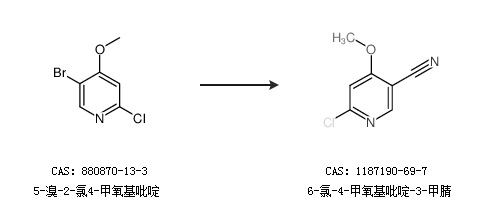 1.通过5-溴-2-氯4-甲氧基吡啶合成6-氯-4-甲氧基吡啶-3-甲腈