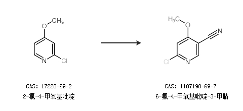 2.通过2-氯-4-甲氧基吡啶合成6-氯-4-甲氧基吡啶-3-甲腈