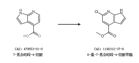 1.通过1H-吡咯并[2,3-b]吡啶-4-羧酸甲酯合成6-氯-7-氮杂吲哚-4-羧酸甲酯