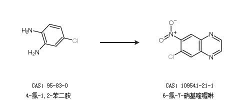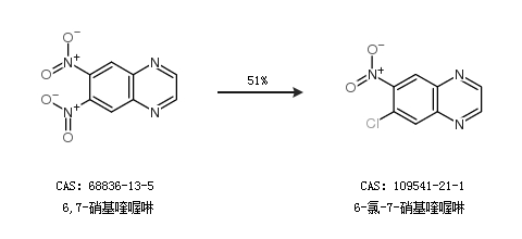 1.通过6,7-硝基喹喔啉合成6-氯-7-硝基喹喔啉,收率约51%;