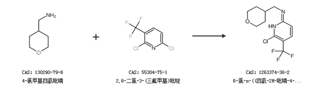 1.通过4-氨甲基四氢吡喃和2,6-二氯-3-(三氟甲基)吡啶合成6-氯-n-((四氢-2H-吡喃-4-基)甲基)-5-(三氟甲基)吡啶-2-胺