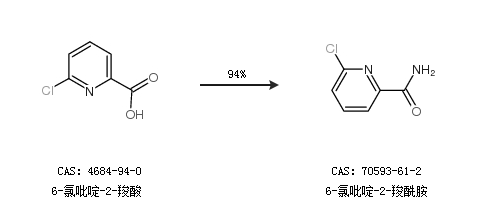 1.通过6-氯吡啶-2-羧酸合成6-氯吡啶-2-羧酰胺,收率约94%;
