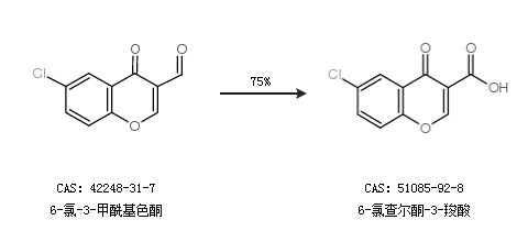 1.通过6-氯-3-甲酰基色酮合成6-氯查尔酮-3-羧酸,收率约75%;