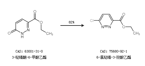 2.通过3-哒嗪酮-6-甲酸乙酯合成6-氯哒嗪-3-羧酸乙酯,收率约82%;