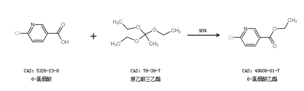2.通过6-氯烟酸和原乙酸三乙酯合成6-氯烟酸乙酯,收率约90%;