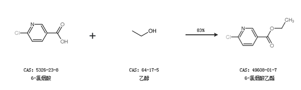1.通过6-氯烟酸和乙醇合成6-氯烟酸乙酯,收率约83%;