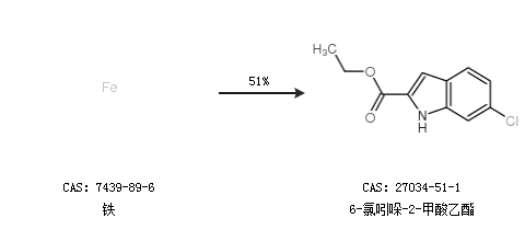 1.通过铁合成6-氯吲哚-2-甲酸乙酯,收率约51%;