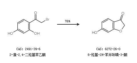 2.通过2-溴-2,4-二羟基苯乙酮合成6-羟基-2H-苯并呋喃-3-酮,收率约76%;