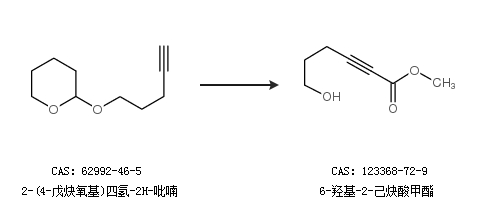 1.通过2-(4-戊炔氧基)四氢-2H-吡喃合成6-羟基-2-己炔酸甲酯