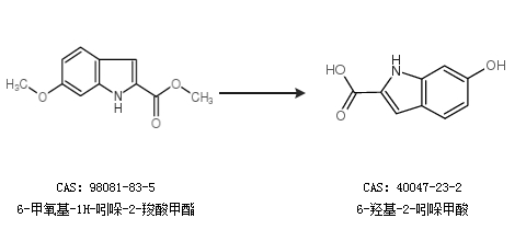 1.通过6-甲氧基-1H-吲哚-2-羧酸甲酯合成6-羟基-2-吲哚甲酸