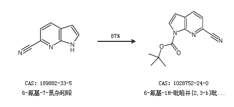 1.通过6-氰基-7-氮杂吲哚合成6-氰基-1H-吡咯并[2,3-b]吡啶-1-羧酸 1,1-二甲基乙酯,收率约87%;