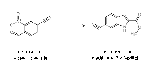 2.通过4-醛基-3-硝基-苯腈合成6-氰基-1H-吲哚-2-羧酸甲酯