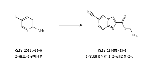 2.通过2-氨基-5-碘吡啶合成6-氰基咪唑并[1,2-a]吡啶-2-羧酸乙酯