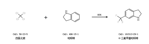 1.通过四氯化碳和吲哚啉合成6-三氟甲基吲哚啉,收率约80%;