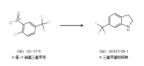 2.通过4-氯-3-硝基三氟甲苯合成6-三氟甲基吲哚啉