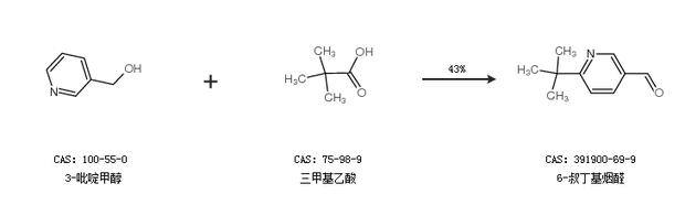 1.通过3-吡啶甲醇和三甲基乙酸合成6-叔丁基烟醛,收率约43%;