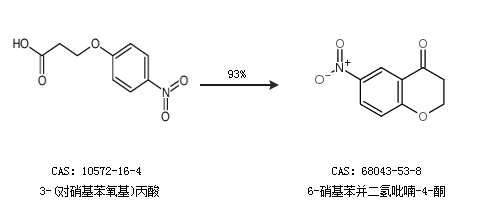 1.通过3-(对硝基苯氧基)丙酸合成6-硝基苯并二氢吡喃-4-酮,收率约93%;