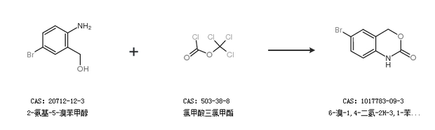 2.通过2-氨基-5-溴苯甲醇和氯甲酸三氯甲酯合成6-溴-1,4-二氢-2H-3,1-苯并恶嗪-2-酮