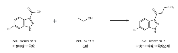 1.通过6-溴吲唑-3-羧酸和乙醇合成6-溴-1H-咪唑-3-羧酸乙酯