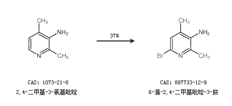 1.通过2,4-二甲基-3-氨基吡啶合成6-溴-2,4-二甲基吡啶-3-胺,收率约37%;