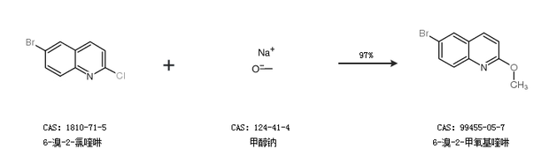 2.通过6-溴-2-氯喹啉和甲醇钠合成6-溴-2-甲氧基喹啉,收率约97%;