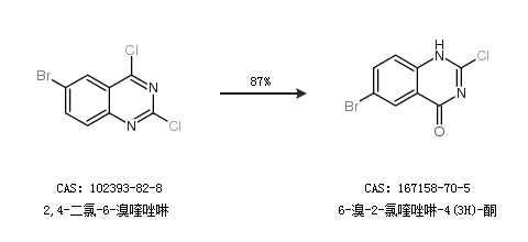 1.通过2,4-二氯-6-溴喹唑啉合成6-溴-2-氯喹唑啉-4(3H)-酮,收率约87%;