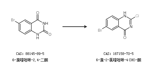 2.通过6-溴喹唑啉-2,4-二酮合成6-溴-2-氯喹唑啉-4(3H)-酮