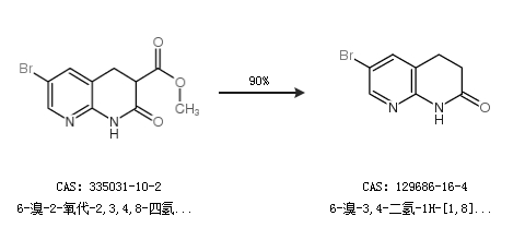 1.通过6-溴-2-氧代-2,3,4,8-四氢-1,8-萘啶-3-甲酸甲酯合成6-溴-3,4-二氢-1H-[1,8]萘啶-2-酮,收率约90%;