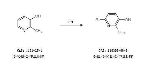 2.通过3-羟基-2-甲基吡啶合成6-溴-3-羟基-2-甲基吡啶,收率约22%;
