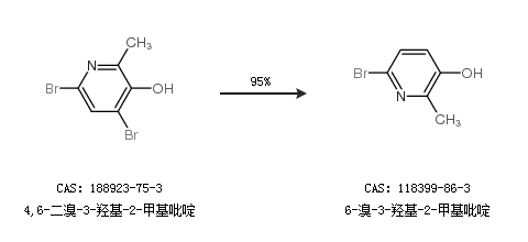 1.通过4,6-二溴-3-羟基-2-甲基吡啶合成6-溴-3-羟基-2-甲基吡啶,收率约95%;