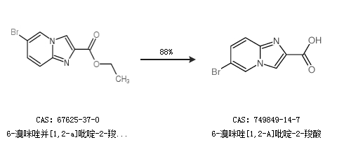1.通过6-溴咪唑并[1,2-a]吡啶-2-羧酸乙酯合成6-溴咪唑[1,2-A]吡啶-2-羧酸,收率约88%;