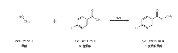 1.通过甲醇和6-溴烟酸合成6-溴烟酸甲酯,收率约99%;