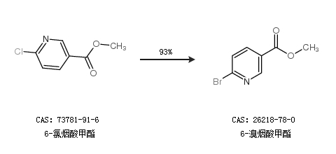 2.通过6-氯烟酸甲酯合成6-溴烟酸甲酯,收率约93%;