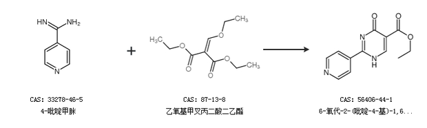 1.通过4-吡啶甲脒和乙氧基甲叉丙二酸二乙酯合成6-氧代-2-(吡啶-4-基)-1,6-二氢嘧啶-5-羧酸乙酯