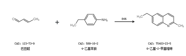 1.通过巴豆醛和4-乙基苯胺合成6-乙基-2-甲基喹啉,收率约84%;