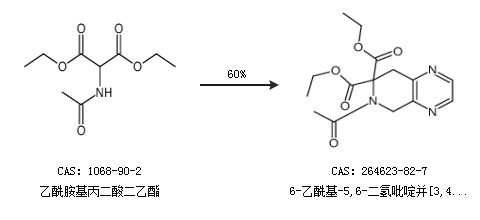 1.通过乙酰胺基丙二酸二乙酯合成6-乙酰基-5,6-二氢吡啶并[3,4-b]吡嗪-7,7(8h)-二羧酸二乙酯,收率约60%;