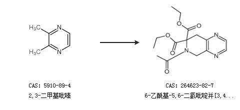 2.通过2,3-二甲基吡嗪合成6-乙酰基-5,6-二氢吡啶并[3,4-b]吡嗪-7,7(8h)-二羧酸二乙酯