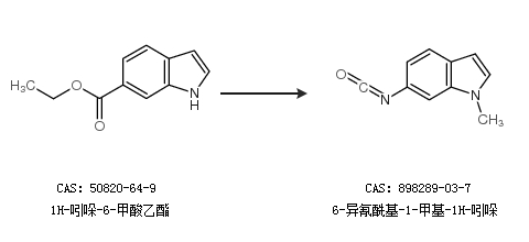 2.通过1H-吲哚-6-甲酸乙酯合成6-异氰酰基-1-甲基-1H-吲哚